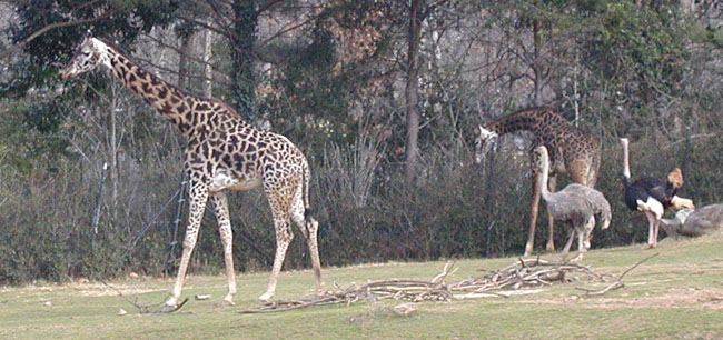 A couple giraffes, a couple ostriches, some sticks. These are things of which good animal art is made. This was the first time I'd ever seen a live giraffe, and all the books are right: they are WAAAAY tall. Despite being the Dikembe Mutombo of nature, they are actually quite graceful, and strangely sexy.