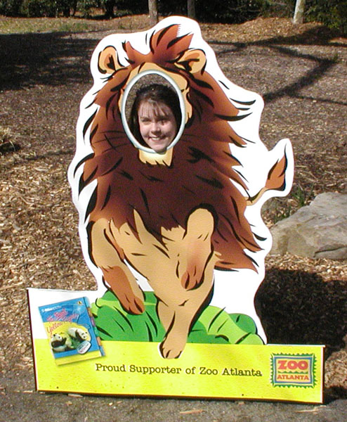 AAAA! A lion! Oh wait...it's just that crazy Hearnwife, in a stick-your-face-in-the-lion-placard thing! She so crazy.