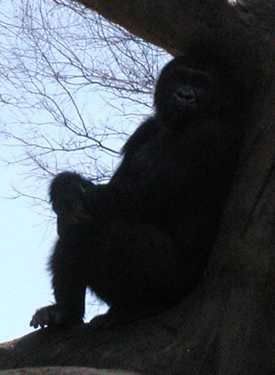 I'm really pissed this didn't come out better. It's a gorilla, if you can't tell; the lump on the left (above the foot) looks like a head, but his actual head is closer to the upper right. He was looking RIGHT AT ME. It was so money, and my bustass camera screwed it up. Grrrrr. |