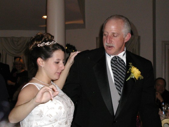 | Jodi and her dad have taken dance lessons for some time, so watching them bust a waltz out was a nice treat for those of us with two left feet. (I don't actually have two left feet. I only have one foot (my right); my other foot was lost in a tragic caber-tossing accident.) | ![]() |
