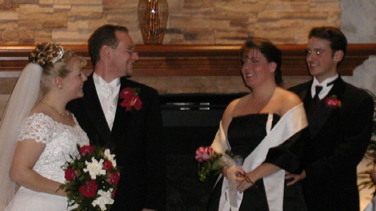 Mandy's bouquet appears to be made of some kind of tribble-starfish creature. Jared almost looks respectable, until you start to wonder what his hands are doing.