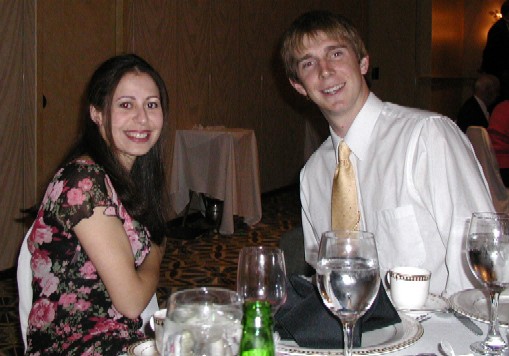 | Venessa and Kris, lookin' fly. You probably are wondering how Venessa pulled off the "one red eye" phenomenon. I'm pretty sure her right eye is made of glass. Kris is looking particularly dapper in his suit from the "Kwame Brown, NBA Draft Day 2001" Collection. | ![]() |