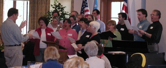 This is from when Sir David Willcocks was in town, and we celebrated Bill Owen's 20th anniversary at Christ Church. My father is all the way on the left, conducting an amusing psalm. Note: documentary evidence that my father has no ass.