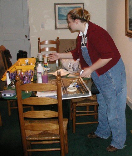 Here's Liz working on her paintings. While I was there she painted a pretty neat sheep. I like sheep, they are tasty.