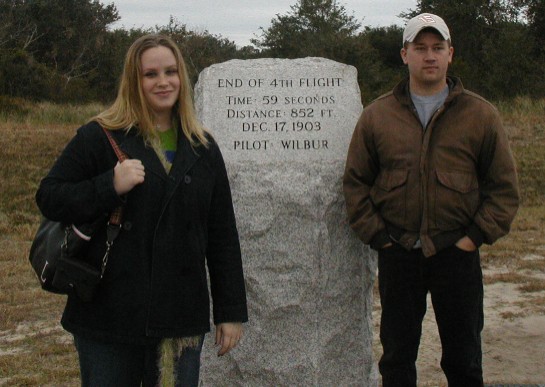 Here's Liz and Gabe by one of the markers at the Wright Brothers Memorial. This one marks the end of the last flight on December 17th, 1903, when Wilbur Wright flew almost a whole minute before landing awkwardly and breaking the plane.
